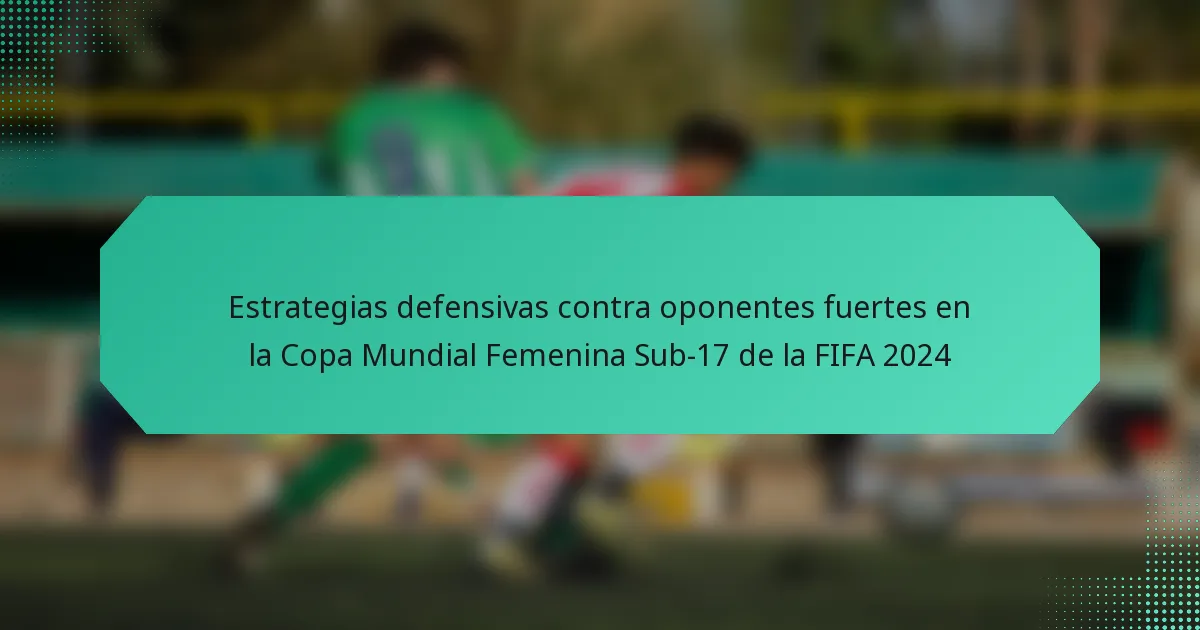 En la Copa Mundial Femenina Sub-17 de la FIFA 2024, las estrategias defensivas efectivas son cruciales para los equipos que se enfrentan a oponentes fuertes. Al centrarse en formaciones, posicionamiento de jugadores y comunicación, los equipos pueden adaptar sus tácticas para contrarrestar las fortalezas rivales mientras utilizan técnicas de presión para recuperar la posesión. La elección de la formación juega un papel vital en la mejora de las capacidades defensivas de un equipo, asegurando que mantengan la estructura y respondan de manera efectiva a las amenazas de ataque.