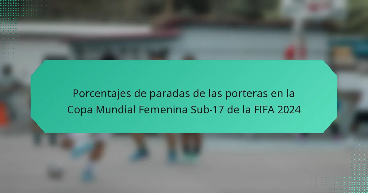 Los porcentajes de paradas de las porteras en la Copa Mundial Femenina Sub-17 de la FIFA 2024 reflejan su efectividad en la prevención de goles durante el torneo. Estas estadísticas son cruciales para evaluar el rendimiento individual y comprender la dinámica del equipo, ya que pueden variar significativamente según las condiciones del partido y el nivel de competencia.