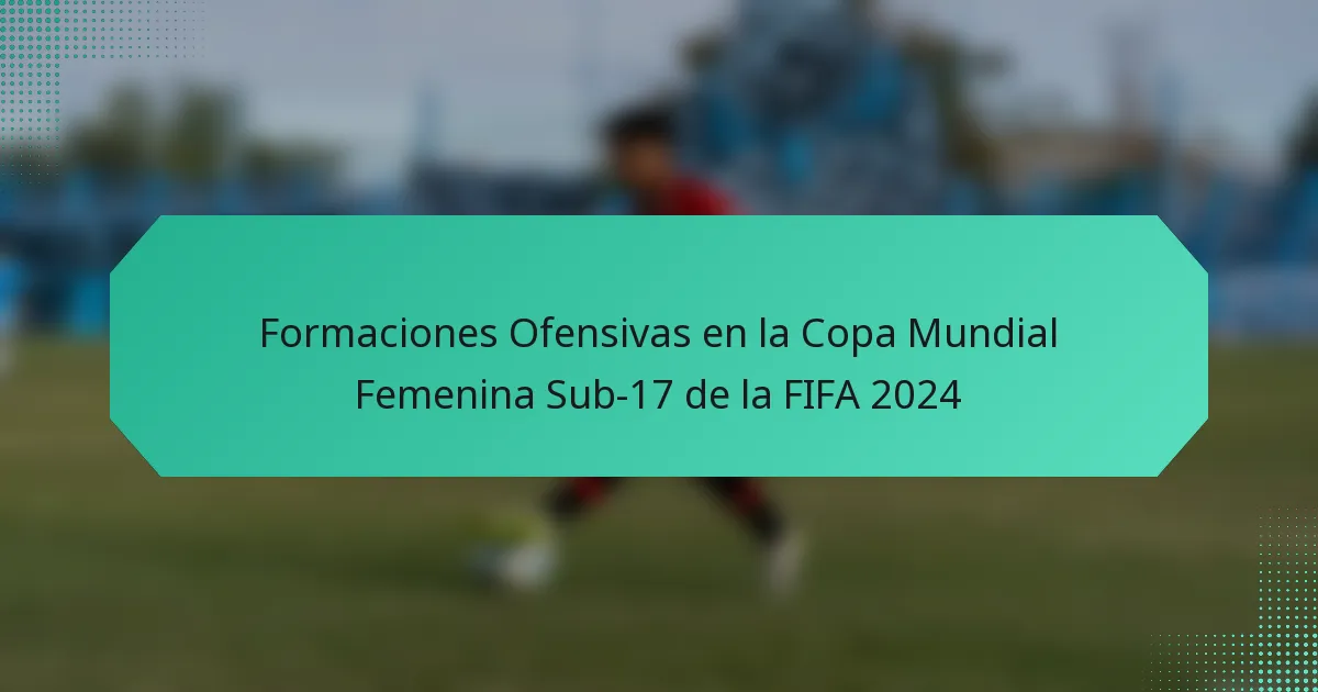 La Copa Mundial Femenina Sub-17 de la FIFA 2024 destaca la importancia estratégica de las formaciones ofensivas en la configuración del rendimiento del equipo y el potencial de anotación. Los equipos emplean diversas formaciones como 4-3-3, 4-2-3-1, 3-5-2 y 5-3-2, cada una diseñada para optimizar su juego ofensivo y adaptarse a diferentes oponentes. Estas elecciones tácticas influyen significativamente en cómo los equipos crean y convierten oportunidades de gol a lo largo del torneo.