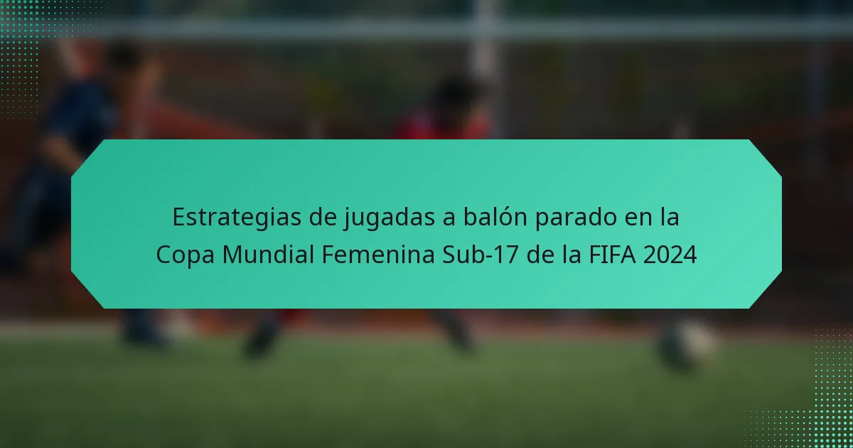 Las estrategias de jugadas a balón parado en el fútbol son esenciales para crear oportunidades de gol durante las interrupciones del juego, como tiros libres y córners. En la Copa Mundial Femenina Sub-17 de la FIFA 2024, estas tácticas pueden influir en gran medida en los resultados de los partidos, ya que los equipos desarrollan jugadas organizadas adaptadas a las fortalezas y formaciones de sus jugadoras. La evolución de estas estrategias refleja un cambio hacia enfoques más complejos y variados, aumentando la emoción y competitividad del torneo.