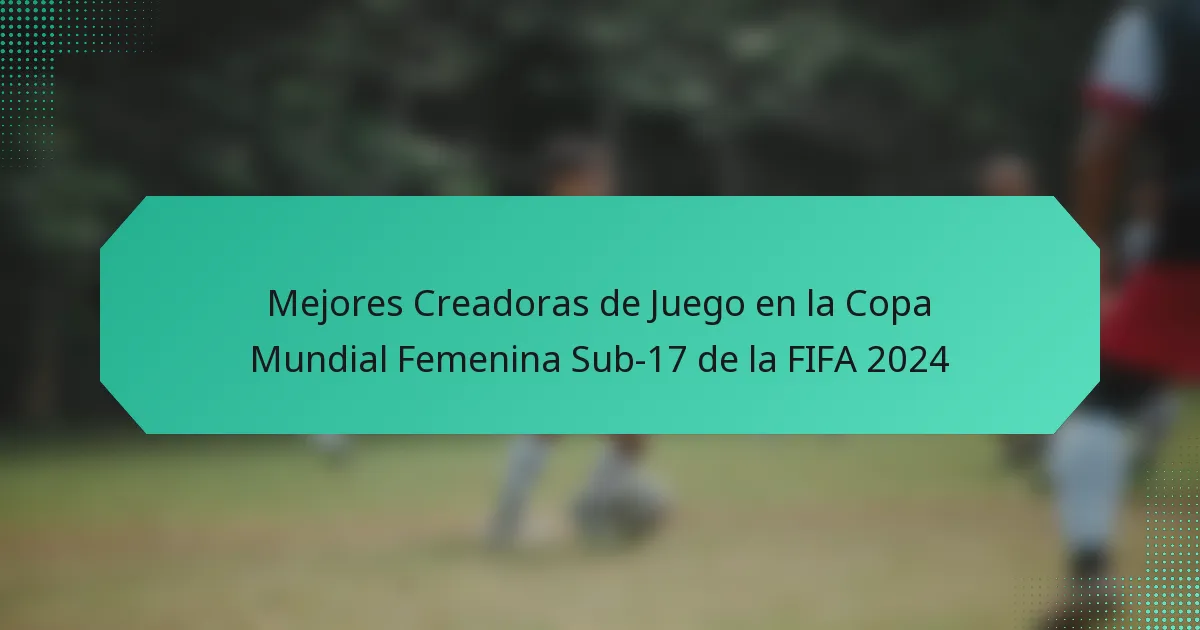 Las mejores creadoras de juego en la Copa Mundial Femenina Sub-17 de la FIFA 2024 son jugadoras destacadas que sobresalen en la creación de oportunidades de gol y en la conducción de las estrategias ofensivas de sus equipos. Sus habilidades y contribuciones únicas influyen significativamente en los resultados de los partidos y en la dinámica del equipo.